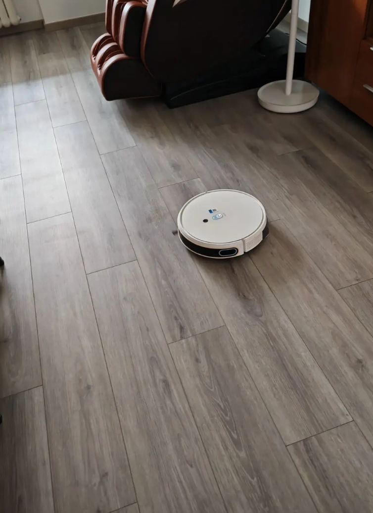 买全自动扫地机器人的目的,就是要达到“身不动膀不摇”。 这个家伙兢兢业业,一个房间一个房间地连扫带拖。 看着别人干活,也算是一种享受。 盛夏季节,亲自拖地,动一动就是一身大汗。 别以为自己拖得干净,其实它干得比人工干净得多。 为什么这么说呢? 打眼一看,大自然材料铺的木地板挺干净吧? 它每天干完一遍结束时,我会取出它肚子里的尘盒。 那尘盒基本上都满了。 你说家里又不养宠物,哪里来的那么多灰絮? 它天天干,灰尘天天有。 爱干净的人,就是一辈子与灰尘做斗争。 那这个全自动扫地机器人,就是比较好的“斗争武器”。 我这个机器人很便宜,不是那种特别高级的,当时也是图便宜。 它是科沃斯旗下的一个公司研发的。 先买了一台,用着好,紧接着又买了三台。 那三台留在闺蜜家里了。 小张不会用,每天还是用拖把吭哧吭哧地去擦。 这一台我抱回了自己家中。 我是机器和人工相结合,有时候也用拖把擦一擦厨房和阳台。 这台机器已经用了三年多,还没有坏。 我等它坏了之后也不再修了,到时把闺女家那几台机器,一台一台运来我自己用。