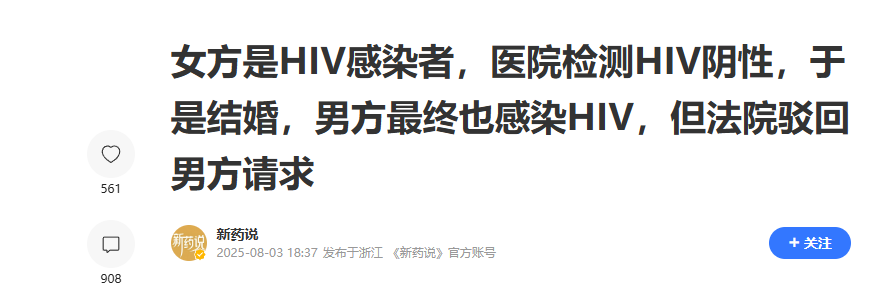 从民事判决书2025年7月发布的消息得知,27岁的阿强(化名)和相恋四年的女友小美(化名),正准备携手人生下一程。出于对未来的负责,阿强提议,两人在正式同居前,一起去做个HIV检测。