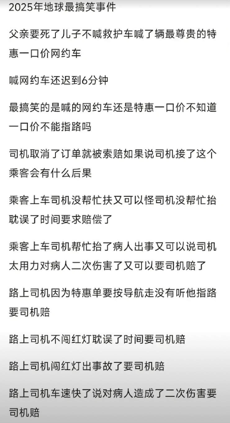 如果司机也开得飞快的,但是家属仍旧觉得不快,到头来,人到了医院还是一样的结果,那家属会不会又再次指责说司机还没尽力呢!