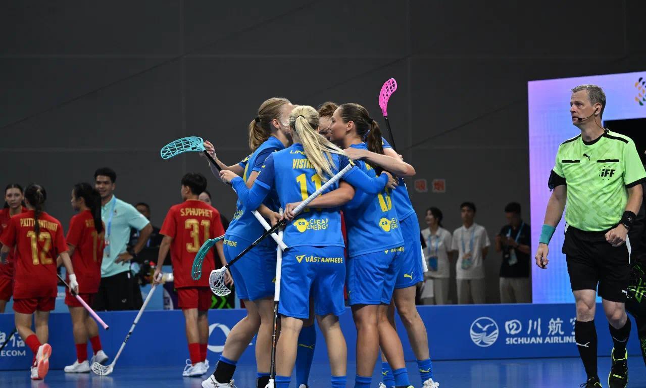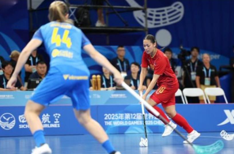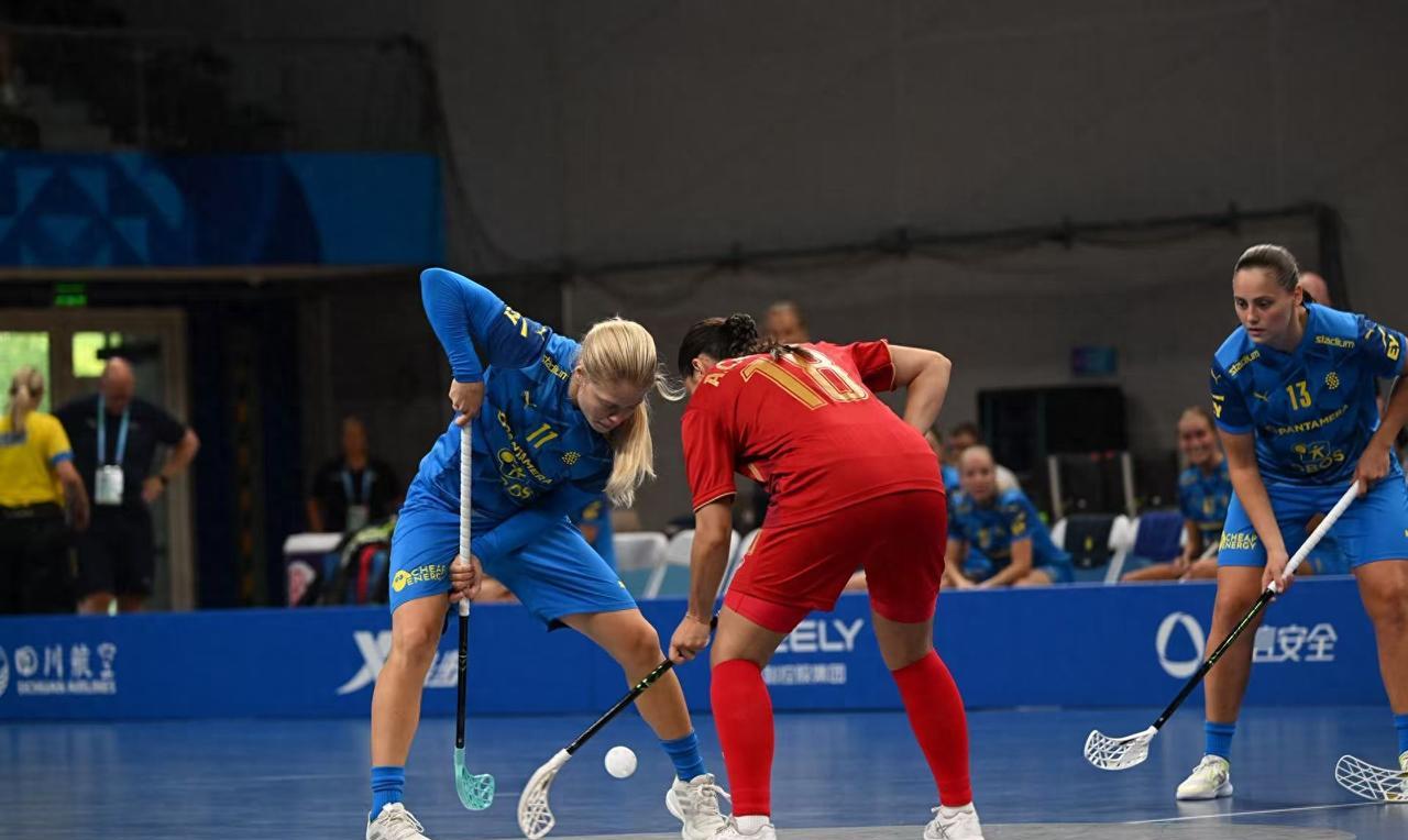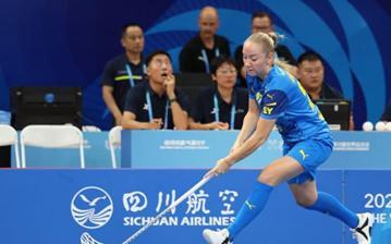 成都进行的世界运动会首场比赛今天上午已开打,这是一场再新都香城体育中心进行的软式曲棍球女子团体小组赛,泰国对战瑞典,瑞典球员单骑闯关,打入本次比赛首粒进球。