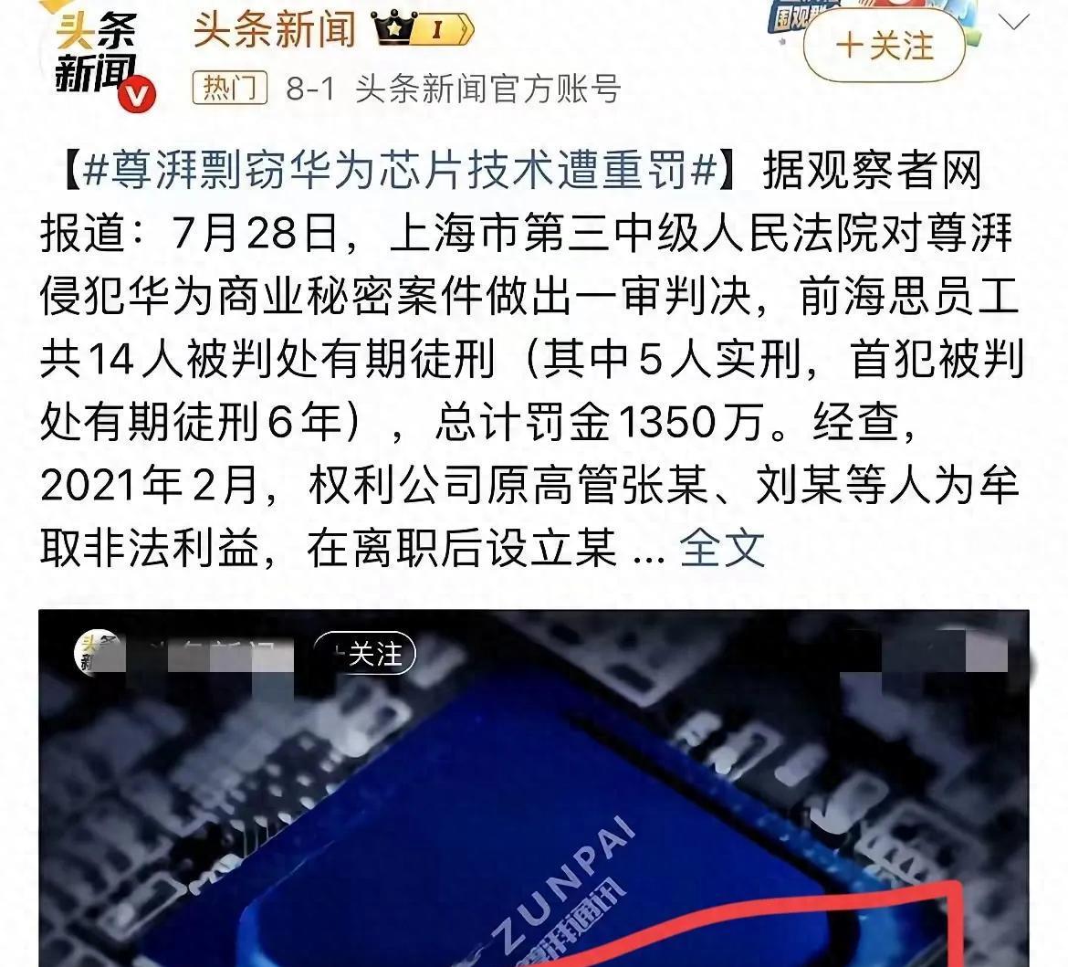 被董明珠说中了!国产芯片出了大问题,内鬼落网,主犯张琨还是美国留学生,从美国高通跳槽到华为,还当上了海思技术总监,这履历够牛吧?可谁能想到,2021年他离职后,撬走20多个华为研发人员,成立尊湃通讯。结果呢,华为一查,好家伙,芯片技术泄露,损失超亿元!这可不是小钱,关键是对国产芯片研发打击太大了。 当新闻报道“中国国产芯片被窃”时,许多网友在看到这个标题后都不禁感到震惊和愤怒。 中国的芯片技术才刚刚迎来一些突破和进展,然而竟然有人敢从自己人中间下手,窃取这些重要的技术。这种行为无疑是自掘坟墓,犹如给自己扎针。 更令人大跌眼镜的是,这场技术剽窃案件的主谋居然是一个海归生。 这个消息一经曝出,立刻引发了广泛的讨论。 许多人回想起董明珠曾经说过的一句话:“海归不一定就是靠谱的。” 她当时的言论曾引起过争议,而如今,随着这起事件的发生,这句话似乎得到了某种“验证”。 大家开始质疑,海归是否真的如外界所想的那样,值得信任? 毕竟,海归生通常带着高学历和丰富的国际视野,正是这样的人,竟然背叛了自己的祖国,做出如此违背道德的事情。 这场事件不仅让公众对海归的信任产生动摇,也使得有关人才引进、科研合作等方面的问题成为了热门话题。 有人开始反思,中国在引进海外高端人才时,是否应该更加谨慎,确保他们在享受国家资源的同时,也能忠诚于本国的发展利益。而这场风波无疑为相关政策的审视提供了新的契机。 张琨,北京大学电子工程系本科、中科院微电子所硕士,曾在美国高通担任射频工程师,参与过多款Wi-Fi和蓝牙芯片的研发。2011年,他加入华为海思,担任技术总监,并在该岗位上坚守了整整十年,积累了深厚的技术背景和行业经验。 2021年2月,张琨突然宣布离开华为,携手多位前同事成立了尊湃通讯科技(南京)有限公司。 该公司宣称专注于Wi-Fi 6芯片的研发,短短两个月便成功吸引了接近亿元的天使轮融资,由高榕资本领投,而在Pre-A轮融资时,资金更是激增至数亿元人民币。 凭借张琨的顶尖背景和强大的技术团队,加之资本市场的狂热追捧,尊湃迅速成为业内关注的焦点。 小米集团也选择了参投,成为尊湃的9.8%股东,多家地方国资平台也接连入场。 官方宣传甚至称,“尊湃是国产Wi-Fi芯片市场的破局者”,一时风头无二,资本如潮水般涌向这家新兴公司。 这个看似光鲜亮丽的科技新贵背后,却隐藏着一个令人震惊的秘密——其技术竟然是“搬运”而来的! 根据警方的调查,张琨等人通过高薪和股权的诱惑,成功诱导华为海思的多位研发人员跳槽到尊湃。 这些跳槽的员工并未按照原计划去“再创业”,而是被指使去非法获取华为海思的核心技术信息。 这些机密资料在未经授权的情况下,直接被带走,并且迅速投入到尊湃的产品设计和开发中。 显然,尊湃的技术创新并非完全来自自身的研发,而是在不正当手段下,借用了华为海思的技术积累。 这一曝光引起了业内的广泛震惊,也引发了对企业技术安全和人才管理的深刻反思。 尊湃原本以“创新”和“突破”自诩,但如今却因涉嫌技术盗窃而陷入舆论的风暴中心。 资本的过度追捧和华丽的外表,在被揭开真相后显得愈发苍白。 不过,真相往往迟早会揭露,而这场骗局的破灭,正是源于华为海思的一次内部产品对比测试。 技术团队在对比时惊讶地发现,尊湃的产品与华为海思自家研发的技术有着惊人的相似性,甚至高达90%的重合度,这种巧合显然无法仅用技术趋同来解释。 华为迅速意识到问题的严重性,果断采取了行动,首先向公安机关报案,紧接着提起了民事诉讼,并成功申请了冻结尊湃及其相关公司的9500万元财产。 2023年春天,随着公安部的指挥和全国范围内的联合行动,一张覆盖上海、江苏两地的天罗地网悄无声息地展开,最终将张琨等14名嫌疑人一网打尽。 这场潜伏了十年的背叛,给华为带来了无法估量的损失。 为了个人私利,某些人竟然选择了“釜底抽薪”的做法,这无疑打击了那些踏实做科研、致力于推动技术进步的人的信心。这也让许多人想起了董明珠曾经的那句警言:“慎用海归”。