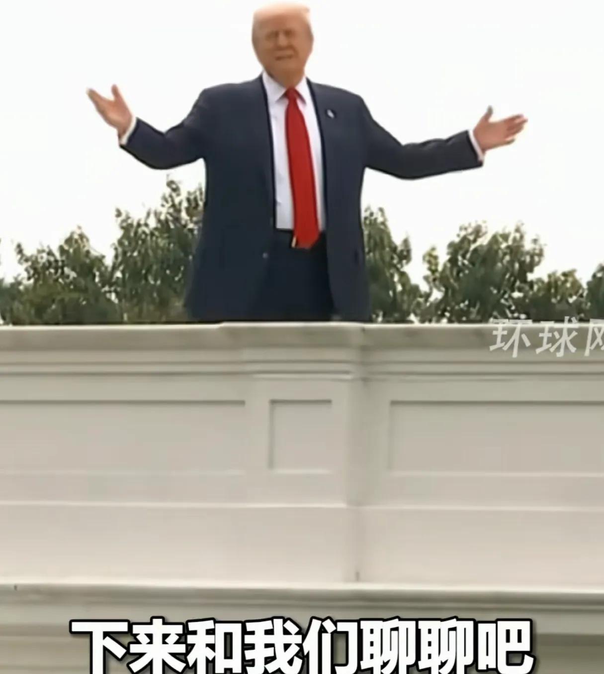 上次是爬墙根,这次是上房顶!特朗普又玩出新高度 根据美国媒体发布的现场画面可以看