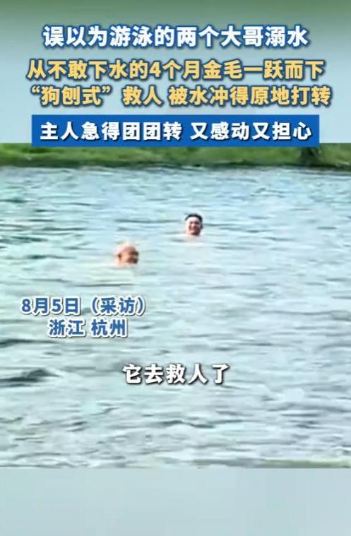 “万物皆有灵!”2025年8月,浙江杭州,一只4个月大的金毛狗本不会游泳,可看到两个正在游泳的大哥,它一跃而下,原来,狗子误以为大哥溺水,赶紧去救人了,却被水冲的原地打转!网友:真是好狗! 那天下午,一男子带着这只小金毛出来遛弯,走到河边时,俩大哥正在水里凉快,扑腾着玩水,小金毛远远瞅着,大概是从没见过人在水里“挣扎”的样子,急得在岸边直蹦,喉咙里发出呜呜的声音。 男子还没反应过来,这小家伙突然前腿一蹬,“扑通”跳进了河里,可它哪会游泳啊,四条小短腿在水里瞎扑腾,身子被水流带着原地打转,离那俩大哥还有老远呢,岸上的主人急得直跺脚,一个劲喊:“回来!不用你救!快回来!” 水里的大哥也听见了,抬头一看,见一只小狗在水里扑腾,赶紧游过去,其中一个大哥把小金毛托起来,慢慢送到岸边,小家伙浑身湿淋淋的,抖着毛,还一个劲往河边挣,好像觉得没完成“任务”。 其实,动物的善良往往很直接,就像这只金毛,它不懂什么是游泳,也分不清人是在玩水还是真溺水,只知道“水里的人可能有危险”,就凭着本能往前冲。 这种不掺任何杂念的善意,在咱们身边也不少见,有人看见老人摔倒会扶,有人遇到求助会搭把手,这些举动和小金毛救人一样,都是发自内心的善意。 现在社会节奏快,有时候人会想得多、做得少,反而不如动物来得纯粹,说实话,善良不分物种,也不用想太多,看到别人需要帮忙,能伸把手就伸把手,哪怕只是一点点心意,也能让人心里暖和。 信息来源:《4个月大金毛误以为有人溺水跳水救人》后浪视频