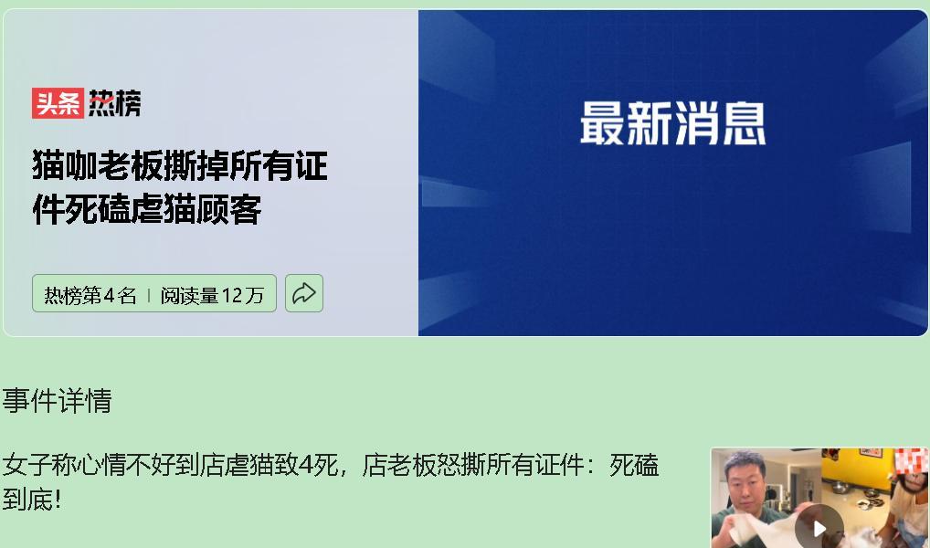 虐猫女,必须付出代价!这女的纯粹心理扭曲,拿猫撒气,真当自己狠人?老板撕执照硬刚