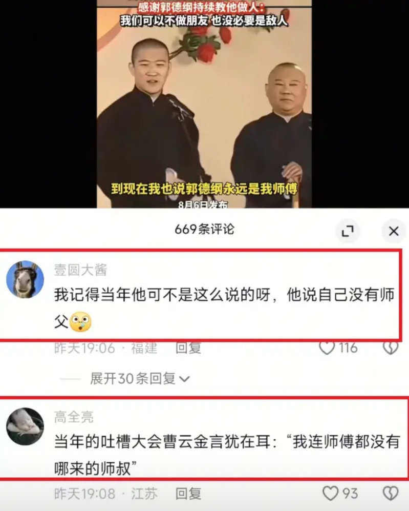 不接受就不接受吧,有些德云社粉丝的逻辑却很奇葩,他们经常举一个例子“证明”:是曹云金先不认郭德纲为师父,然后郭德纲才发的家谱清门。
