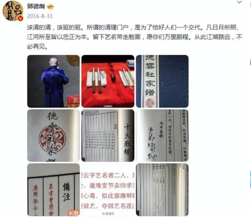 郭德纲发布《德云家谱》是哪一年?2016年8月31日,随后发生了师徒论战。