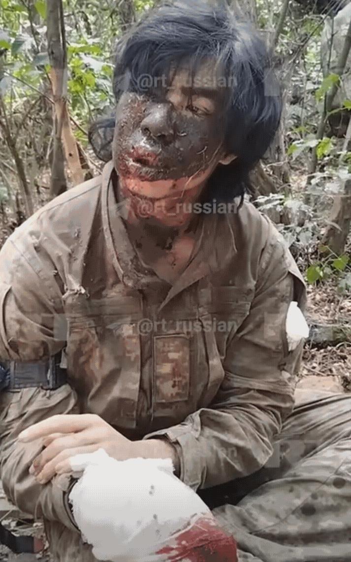 一名越南籍雇佣军被俄军俘虏,在红利曼方向!他佩戴的徽章所属乌军第4国际军团,留了一头长发。他的眼睛和手部被炸伤!俄军还帮他包扎,清理伤口,非常人性化!俄军没有把他突突了。