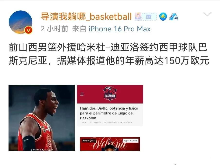 山西超级外援被挖角!西甲球队150年薪直接签两年 近日据多名媒体人报道,上赛季山西队的超级外援迪亚洛已经签约了西甲巴斯克尼亚俱乐部,据悉年薪150万,并且对方一次性开出了两年保障性合同,这对于球员来说更加有保障,因为CBA基本上都是一年一签,万一受伤了下个赛季就没有收入了。 迪亚洛今年27岁,身高1.98,体重89公斤,可以打1-3号位,攻守均衡,上赛季在山西队场均出场26分钟,便可以砍下22.5分7.3篮板3.1助攻2.2抢断,综合实力非常强,帮助山西队打进四强,还被提名最佳国际球员。 山西队上赛季依靠迪亚洛和古德温两个超级外援快速崛起,一度成为夺冠热门,在古德温狮子大张口开出300万美金续约的天价合同下,山西队放弃了续约,然后申请了迪亚洛的优先续约权,结果被西甲球队截胡,真的非常可惜,不过山西队财力雄厚,肯定会美国寻找更厉害的外援。