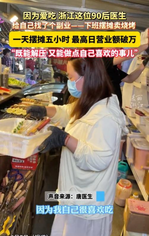 “简直赚翻了!”2025年8月,浙江平湖,一名90后女医生下班后,给自己找了个副业,干个5小时,最多能挣到1万元,她直言:既能解压,又能做点自己喜欢的事!网友:不管干啥都得努力才能致富! 原来,女子打小就爱吃烧烤,家里烧烤炉换了好几个,在医院上班,天天打交道的不是产妇就是急重症,神经总得绷着,有回跟老公抱怨压力大,俩人合计着:不如把爱好变成副业? 说干就干,去年夏天,小两口在夜市角落支起了烧烤摊,刚开始没经验,烤串不是焦了就是没入味,女子下班就扎进厨房练,鸡腿怎么腌才嫩,腰子怎么烤没膻味,光是撒料比例就试了二十多回。 她老公负责穿串、收钱,她掌勺烤串,两口子配合得越来越默契,今年入夏后,夜市人多了起来。尤其是周六周日,从傍晚六点忙到十一点,女子的烤炉就没停过,羊肉串、烤鸡翅,老远就能闻见香味。 有回头等的客人多,光肉串就点了上百个,收摊一算账,一万块出头,女子一天下来,要站个五六小时,腿都麻了,但看到客人吃得香,听着大家夸,她心里就特舒坦,在医院得端着,在这儿能甩开膀子,反而解压。 这事儿传到网上,网友们都挺佩服,有人说:“人家当医生本事大,烤串也能做到拔尖,这才是真能耐”,也有人感慨:“哪有轻轻松松赚钱的,医生下班还这么拼,咱更得努力了。” 女子现在每天照旧上班,只是包里多了本烧烤秘方小本子,她说自己没想过辞职,摆摊就是图个乐子,既能赚点零花钱,又能做喜欢的事,挺好,这世上的致富路啊,从来都给那些又能干又肯拼的人留着。 信息来源:《因为爱吃90后浙江医生下班后摆摊卖烧烤:能解压还做了喜欢的事儿》美丽浙江