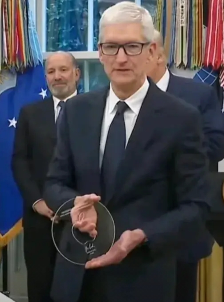 库克代表苹果公司给现任美国总统特朗普送了一个黄金底座的奖杯,且不说这算不算是赤裸裸的贿赂,单就库克这左右逢源的操作,哪怕是放在世界任何一个国家,他都是最容易成功的那个。 毕竟吃人嘴软、拿人手短,收了纯金奖杯之后,你说特朗普会不会给苹果给点小福利。
