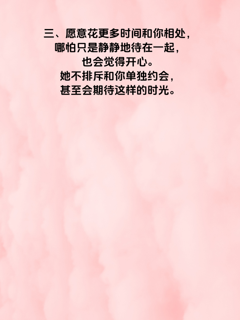 一、当她总是主动找你聊天,分享生活点滴,无论是有趣的事还是烦恼,都想第一时间告诉你,这可是明显的好感信号。她渴望与你交流,对你的生活也充满好奇。 二、她会特别在意你的看法和感受。你的意见对她来说变得很重要,做决定时会考虑你的想法,这说明她心里很在乎你。 三、愿意花更多时间和你相处,哪怕只是静静地待在一起,也会觉得开心。她不排斥和你单独约会,甚至会期待这样的时光。 四、对你的关心无微不至。会留意你的情绪变化,天冷提醒你添衣,生病时贴心照顾你。这种关心是好感加深的有力证明。 五、在你面前她会更注重形象,想要展现自己最好的一面。会精心打扮,希望能吸引你的目光,这都是因为她对你有了不一样的感觉。