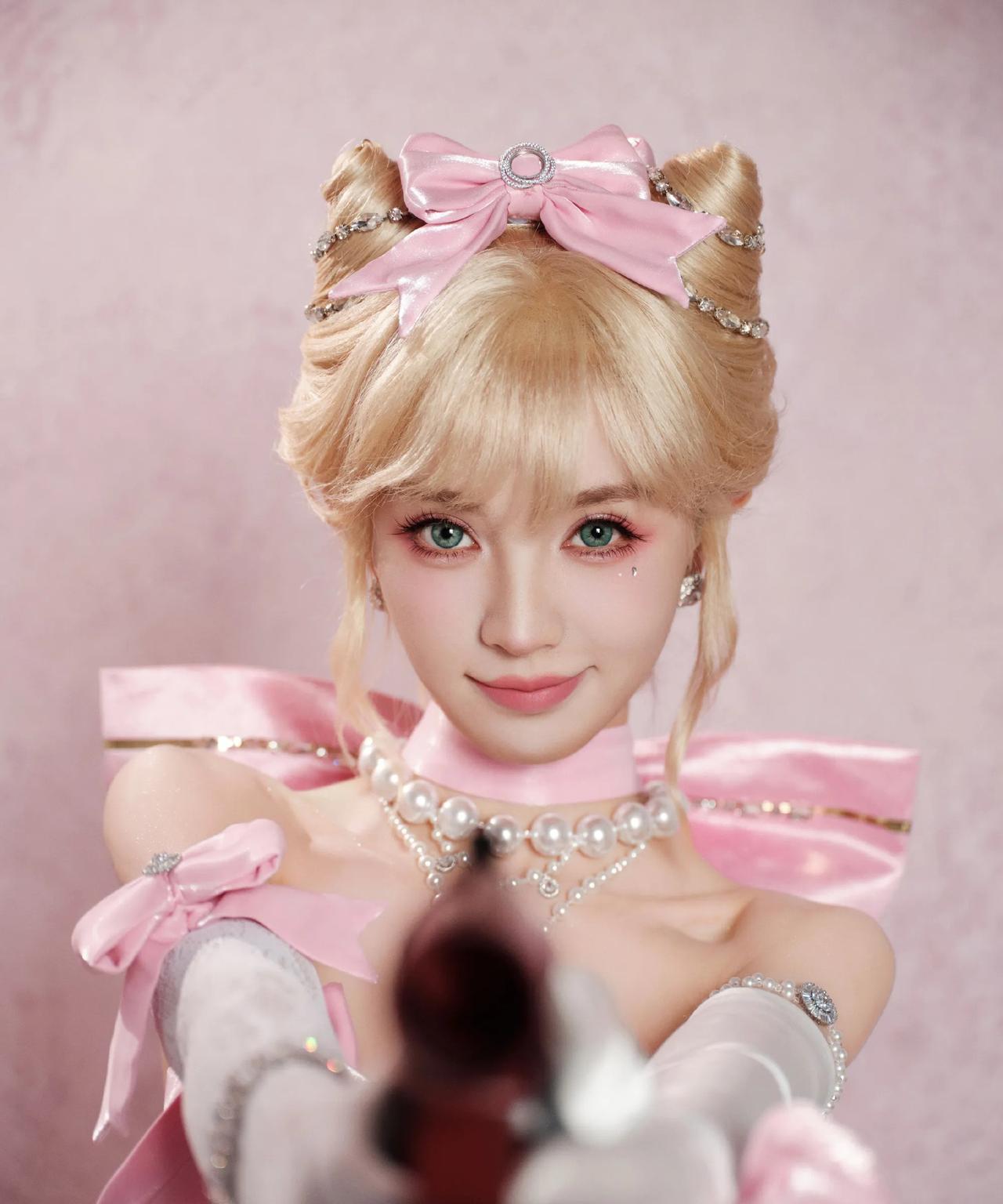 哇哇哇! 田曦薇这次cos《和平精英》的「千金淑猫」简直绝了! 金发猫耳+蕾丝手