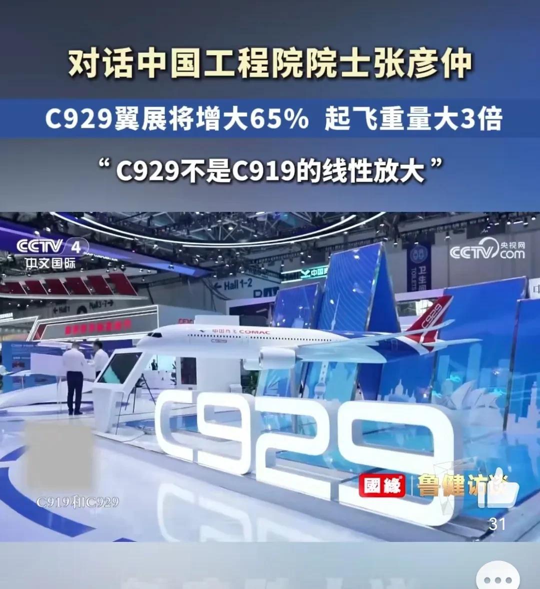 院士亲口证实国产C929将是一款划时代产品,翼展比C919大了65%,起飞重量更