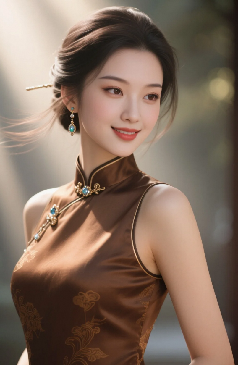 丝滑旗袍+玉石耳坠,这组搭配把优雅刻进DNA