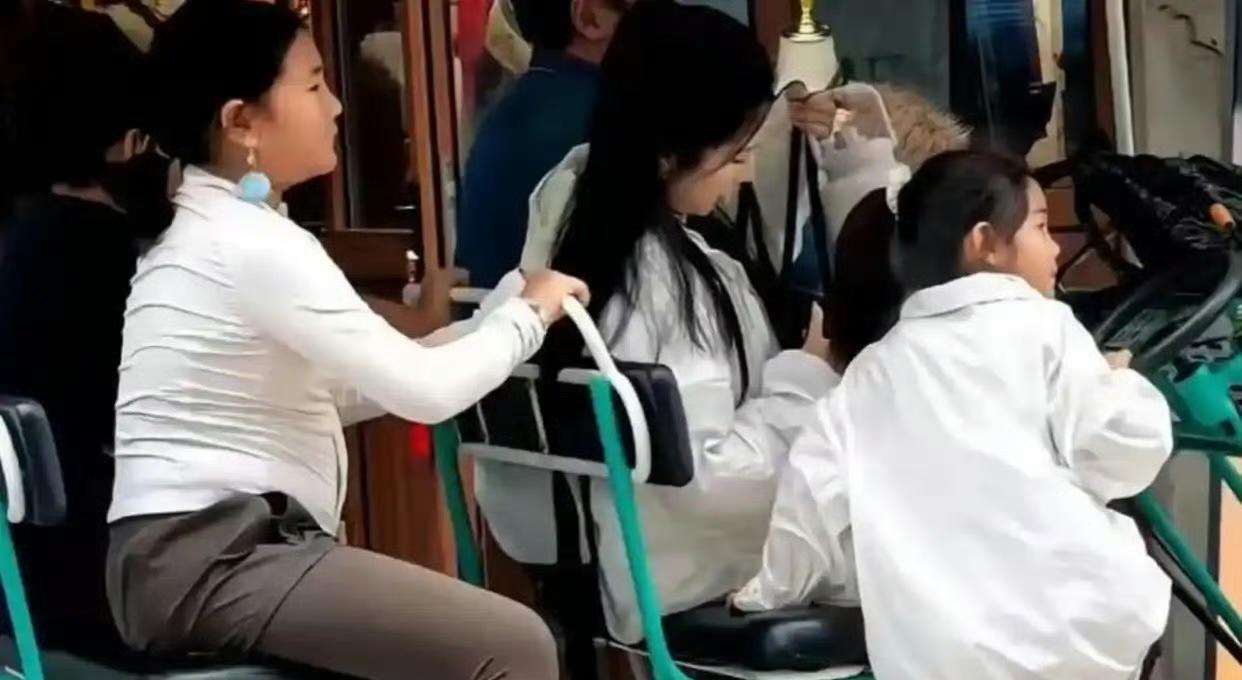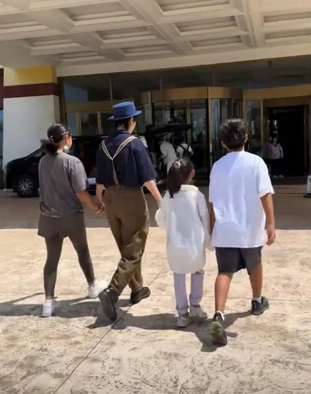何洁带三孩子工作,宝妹身高超哥哥,三个孩子都看着挺结实!