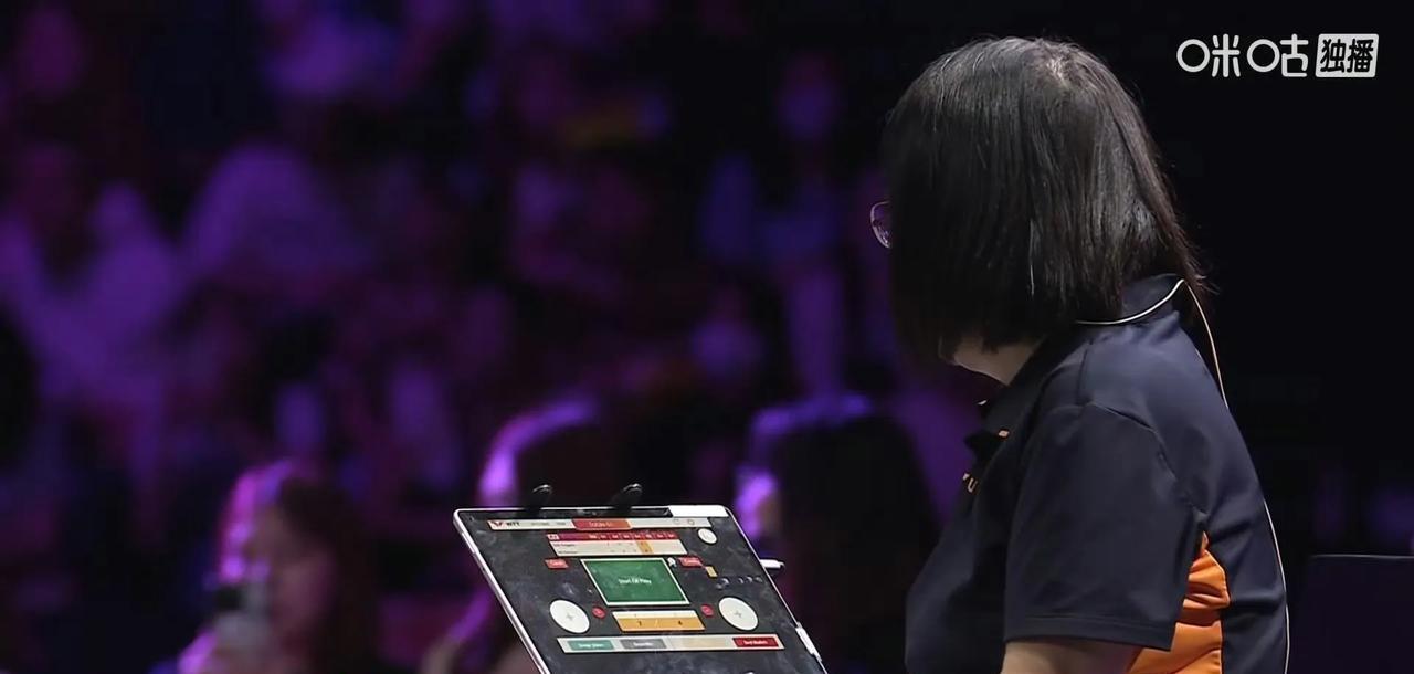 第四局裁判给了石洵瑶一个黄牌, 这是WTT冠军赛横滨站女单半决赛。 大比分莎莎3