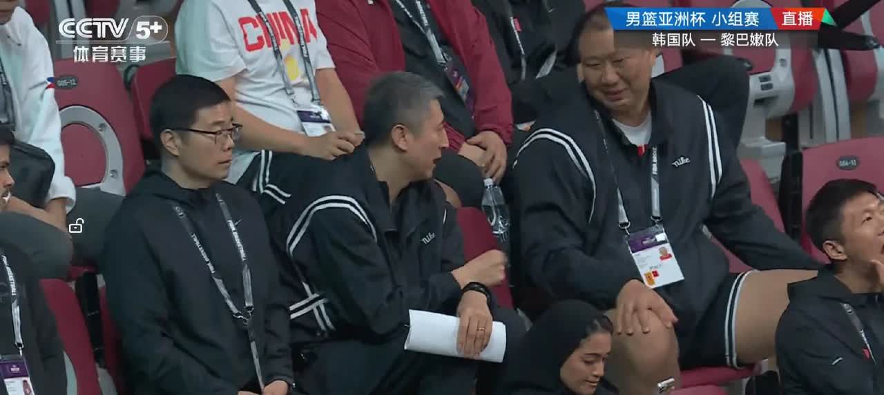 郭士强和篮协领导看笑了!观看亚洲杯韩国打黎巴嫩比赛,坐在看台刺探军情,韩国队一节