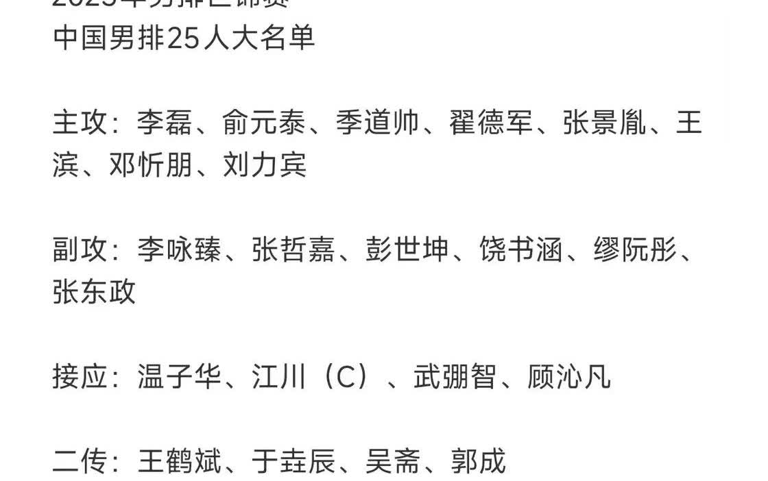 海宁欲调整中国男排边攻手! 中国排协公布了全锦赛各代表队的参赛名单,在中国队世