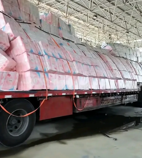 近日,山西关帝服务区,一辆半挂平板车拉了一车的卫生纸,在高速行车的过程中,货物发生了倾斜,从图片里看倾斜的角度还不小,如果要是重新装货,这工作量可不小。