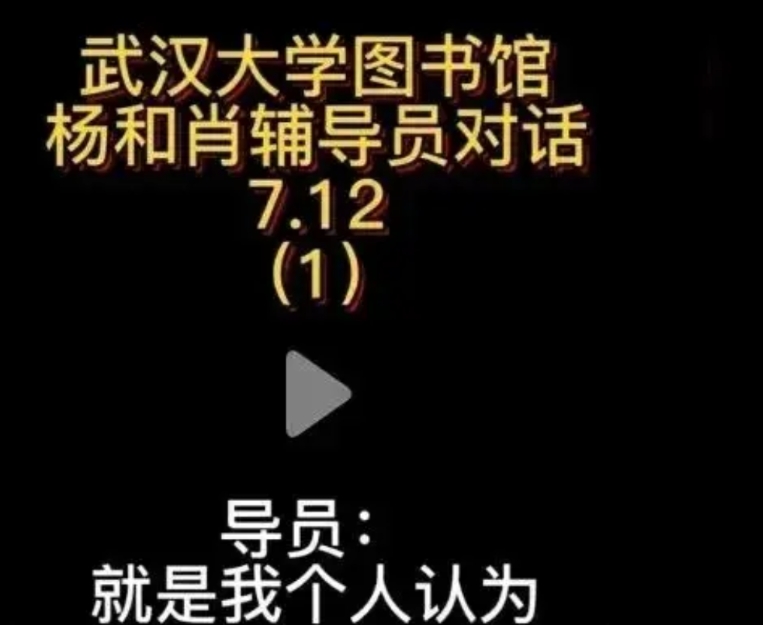 武汉大学杨某某拿肖同学的道歉书和视频,跟刘辅导员讲述了图书馆里的过程,并要求取消肖同学的评奖评优和保研资格。 刘辅导员说:“要求不高”!