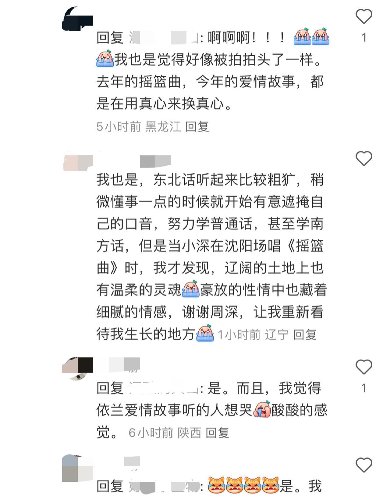 [心]周深·巡演哈尔滨场·《依兰爱情故事》·路人repo[心] [彩虹]好感动!忧伤的曲调温暖的唱更加打动人心! [彩虹]周深愿意走进每一个城市,认真探寻每一座城市的内心,用真心唱好每一个城市的歌,用温柔拥抱每一座城市!