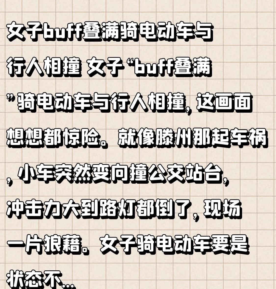 女子buff叠满骑电动车与行人相撞女子“buff叠满”骑着电动车与行人撞在一起