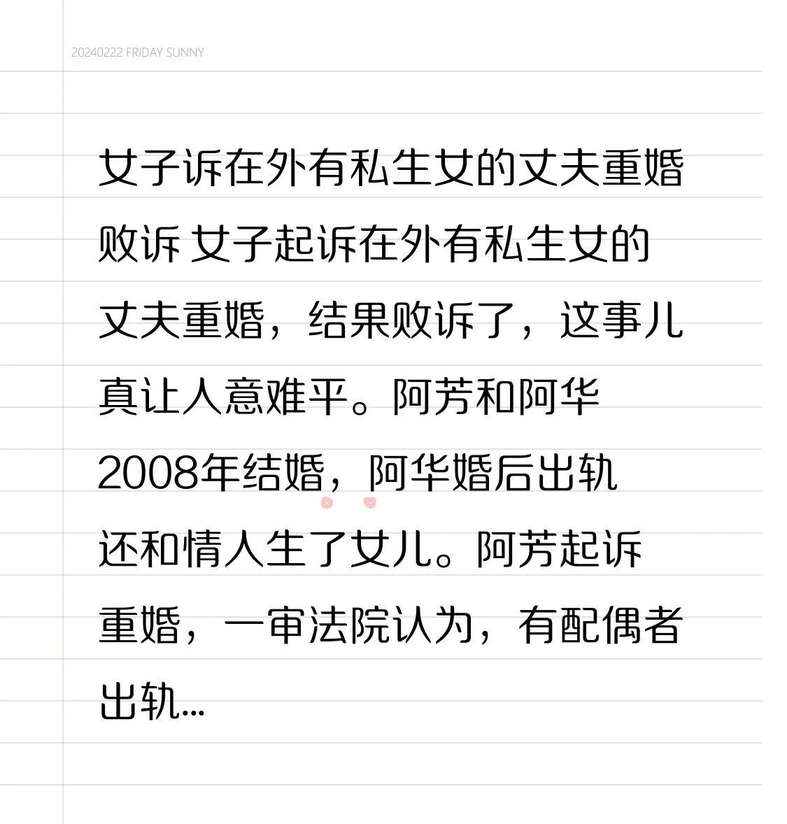女子诉在外有私生女的丈夫重婚败诉 女子状告在外育有私生女的丈夫重婚,结果败诉了,这真的让人难以释怀。 阿芳和阿华在2008年步入了婚姻殿堂。婚后,阿华背叛了阿芳,与情人有了私情,还生下了一个女儿。于是阿芳便起诉阿华重婚。一审法院判定,有配偶者出轨并且生育子女并不足以被认定为重婚,只有以夫妻名义同居才可以。 阿芳提供了不少证据,像孩子的出生证明上阿华是父亲,微信里两人互称夫妻,在离婚调解时阿华也承认出轨生子。可是法院觉得,这些证据不能证明周围的人都认为他们俩是夫妻关系。阿芳上诉之后,仍然被驳回。从这里可以看出,重婚罪的认定标准比人们预想的要高很多。 #广东女子出轨# #插足婚姻# #重婚过错赔偿