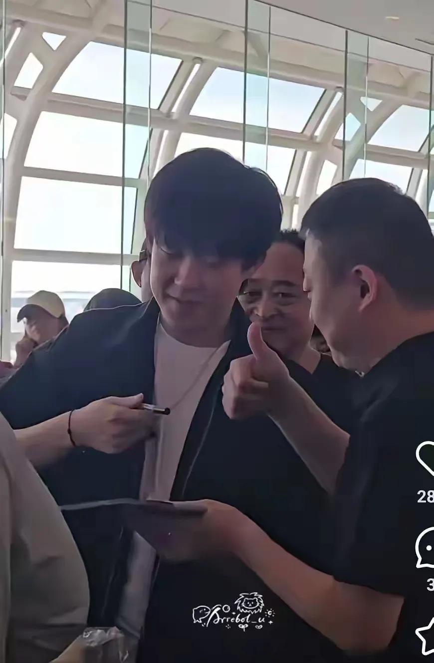 真是不敢相信自己的眼睛,马琳教练也找大头签名啊! 这是在机场里,人很多,估计王楚钦都签不过来,所以会很绅士的说抱歉! 可是这时候递过来的小本子和笔,大头可是不能拒绝,是马琳教练,他也让大头签名吗?我猜不会呀,什么时候签名不行,偏偏这个时候吗? 也许是马琳给别人代签的吧!签完名,马琳还给大头竖起大拇指,表示赞美,估计大头的字很漂亮吧! 真是好羡慕呀!虽然我也是大头的粉丝,但是这辈子估计也拿不到大头的签名了,只能在家里看着大头打球了,替他高兴,替他担心,有时候还得替他写点愤愤不平的小文章!