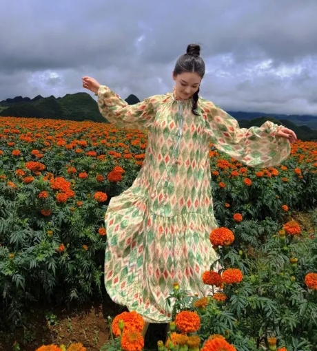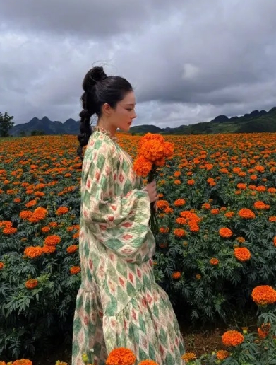 张馨予还真是把日子过成了诗,在橘色花海跳舞,每天可以看到彩虹!