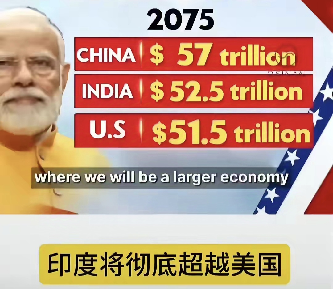 印度甲亢哥:印度购买力比中国大,2050年成为世界第二,2075年超过美国成为世界第一。