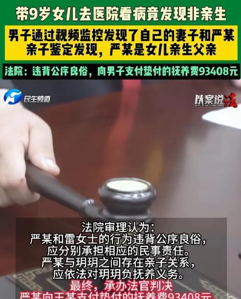 湖北枣阳,男子带9岁女儿去医院看病时,发现女儿血型与自己不匹配,亲子鉴定的结果显示,女儿不是他亲生的。同床共枕的妻子竟给自己戴了这么大一顶绿帽子,男子气炸了,开始暗中调查,为了出这口恶气,男子将妻子和第三者告上法庭,索赔11万。 2022年,湖北枣阳一家医院里,一份血型报告,击碎了王某九年的生活。他带生病的小女儿玥玥来看病,谁知顺手做的检测,竟显示女儿的血型和自己对不上。 这个他倾注了全部心血、从深夜量体温到亲手扎辫子养了九年的孩子,竟然不是自己的?当天回到家后,王某将这份写着“排除亲生关系”的鉴定报告摔在妻子雷某面前时,对方却脸不红心不跳地一口咬定:“鉴定是假的。” 但怀疑的种子一旦落下,就会疯长。看到妻子不见棺材不落泪的模样,王某决心将此事查到底。但他却不知道,自己即将揭开的是一个远比想象中更复杂的烂摊子。 王某悄悄在家装上了监控摄像头,没多久他就从监控里看到妻子与一名叫严某的男子举止亲密,他强忍怒火,在一次严某离开时悄悄跟踪对方,捡走了他丢下的烟头。王某拿着这根烟头再次与自己小女儿玥玥做了亲子鉴定,这份鉴定报告也确认了严某才是玥玥的亲生父亲。 这份报告也让王某九年的父爱与付出,瞬间成了一个心碎的笑话。至此真相大白,王某没有选择忍气吞声的继续过下去,也不再给妻子任何辩驳的机会,直接起诉了严某,妻子雷某被列为第三人。他要求严某支付自己九年来为孩子垫付的抚养费共计11万余元。 法庭上法官斥责严某与雷某的行为“违背公序良俗”。法律最终采信了王某的证据,依据“不当得利”原则——即王某在不知情下替严某履行了抚养义务,使严某获利——判决严某支付小女儿从2014年7月至2023年1月期间的抚养费93408元。 这样的判决放到社会层面争议却不小,王某的遭遇并非个例。江苏的李先生抚养非亲生女13年,获赔6万元;甘肃白银一男子养了7年,获赔5万。这些远低于实际养育成本的赔偿,让许多人觉得“低得离谱”。法律能清算经济账,可被偷走的时光与情感,又该如何作价? 当血缘的谎言撕开后,每个当事人都站到了人性的十字路口,他们的选择也截然不同。王某的选择最直接:诉诸法律,要个说法,也讨回公道。 陕西的陈先生在得知5岁女儿的生父因车祸瘫痪、妻子被娘家赶走后,默默撤回了15万元的索赔。他看着熟睡的女儿说:“我对孩子的爱不是假的。”河北的张先生在拿到16万赔偿后,也依然坚持探望自己养了十年的“女儿”。对他们来说养育之恩的分量,似乎已经超越了血脉。 这一困境也催生了激烈的社会讨论,有人提出“强制新生儿亲子鉴定”,认为可以从源头杜绝悲剧。也有很多人不认可这样的做法,觉得这会让婚姻信任彻底破产。用制度为信任兜底,本身不就是信任的悲哀吗? 一纸鉴定报告可以精准测出DNA,却测不出人性的复杂;法庭判决的九万多元能算出奶粉钱,却算不出一个父亲被掏空的九年。 当我们在争论赔偿标准、探讨鉴定必要性时,却忽略了那个缩在角落里、眼神里充满恐惧与迷茫的孩子。如何重建亲密关系中的诚实,如何为无辜的孩子撑起一个安全的港湾,才是所有成人恩怨之上,那个最根本的责任。