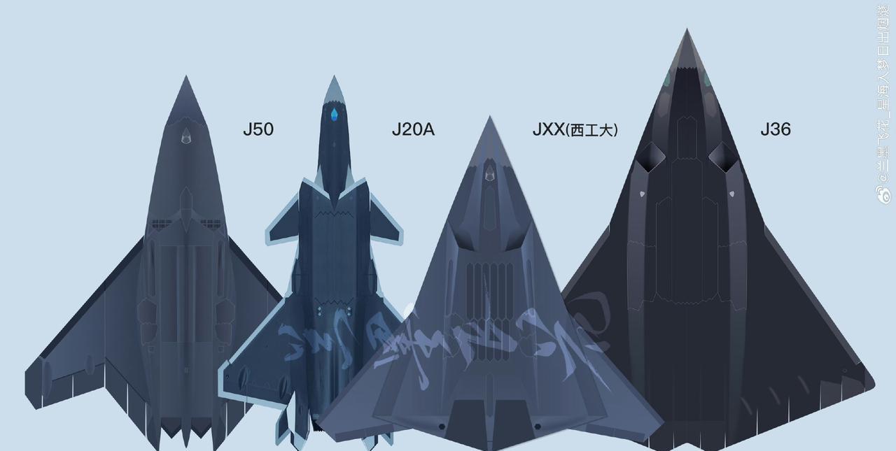 战斗机越造越大了,国产五代机与六代机的同尺寸对比! 歼-20A和歼-35隐身战斗机,代表着中国空军五代机的成熟作战体系,在隐身、机动性、航电融合上已实现实战化应用,是当下空防核心力量。 而歼-XX(西工大)、歼-50(沈飞)、歼-36(成飞)等六代机概念机型,展现出对未来空战的探索:更激进的隐身外形设计,适配无人协同、智能空战等新作战模式,在尺寸布局里,能看到对航程、载荷与先进航电集成的考量,预示着从“平台中心战”向“网络中心战”、“智能空战”的跨越 。 这种对比,不只是外形与尺寸的差异,更是技术路径的迭代。 从五代机对“4S”标准的突破,到六代机向“全域态势感知、跨域协同作战”的迈进,背后是气动设计、智能航电、动力系统等多领域技术的持续攻关,映射着中国航空工业在先进战机研发上,从追赶成熟技术,到探索未来空战形态的进阶轨迹 。