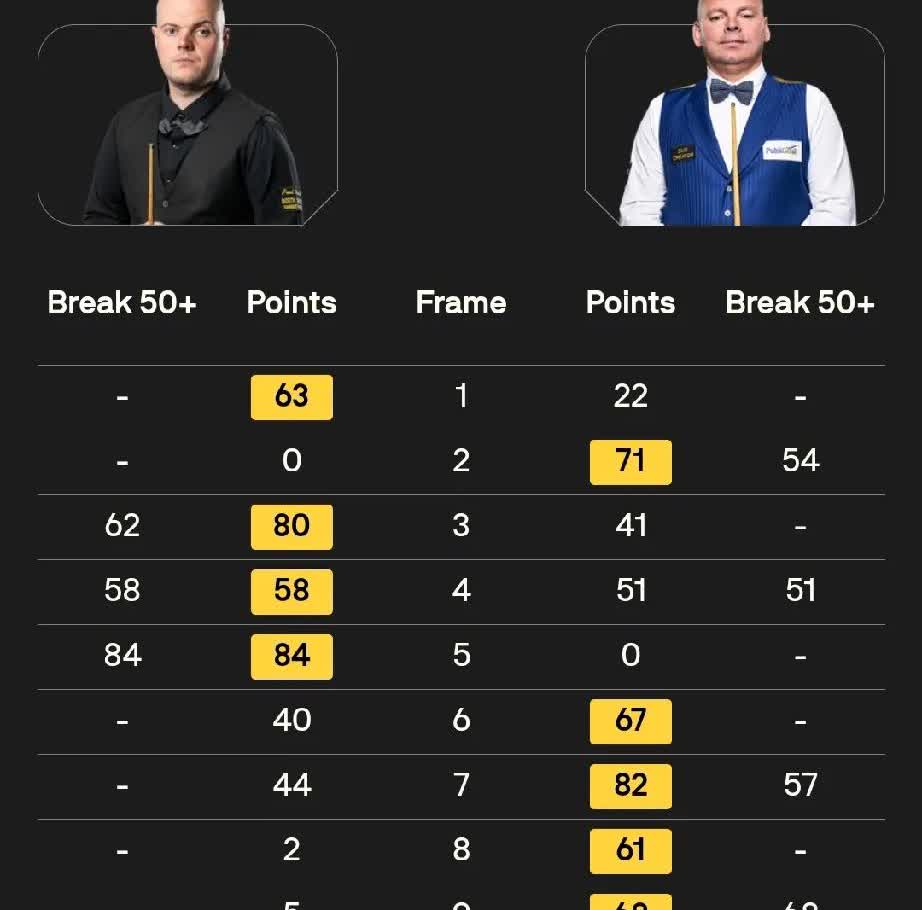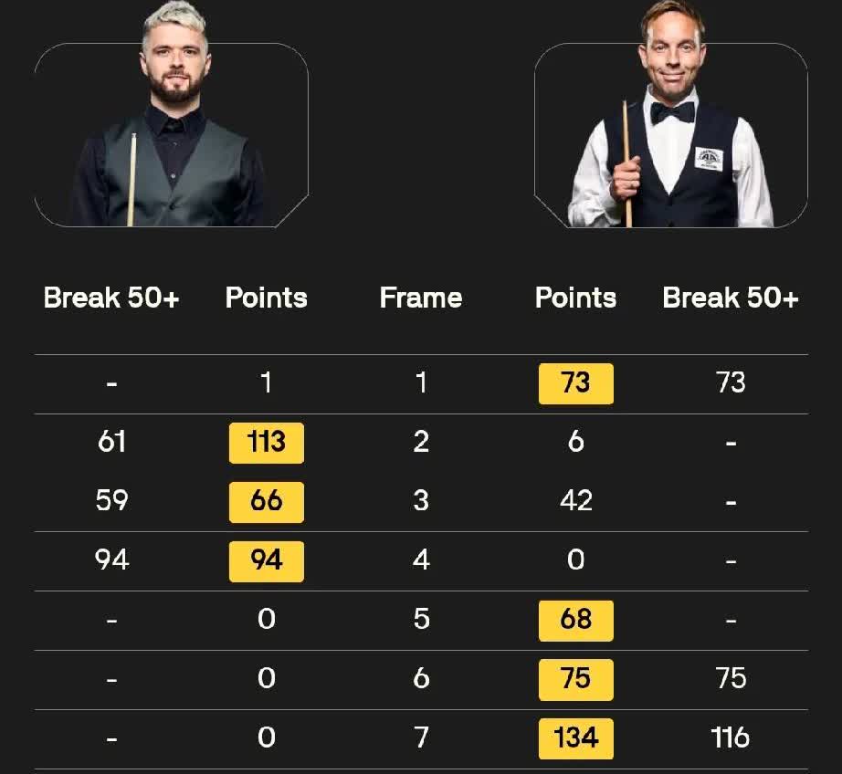 金左手、卡特、斯莱塞、罗伯逊晋级八强! 8月13日晚18点,斯诺克沙特大师赛1/8决赛上半区开杆。 前四局,马克·威廉姆斯3-1肖恩·墨菲、尼尔·罗伯逊3-1马克·塞尔比、奥利弗·莱恩斯3-1阿里·卡特、埃利奥特·斯来塞3-1斯图尔特·宾汉姆。 马克·威廉姆斯6-1肖恩·墨菲,卡特6-3莱恩斯,斯莱塞6-5宾汉姆,尼尔·罗伯逊6-5马克·塞尔比晋级八强。 下半区比赛结束,丁俊晖、赵心童、常冰玉5-6被逆转出局,斯佳辉3-6囧哥。