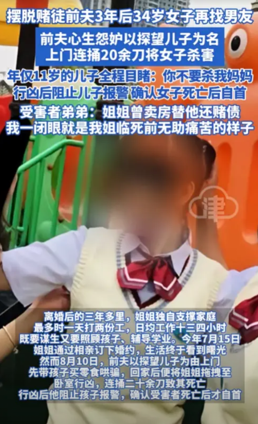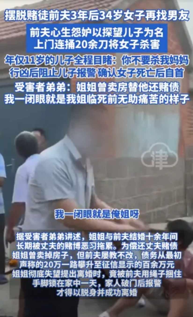 “太坏了!”8月10日,山东临沂,一男子赌博成瘾,妻子忍无可忍与他离婚,然而,离婚3年后,34岁的前妻再找男友,男子却心生怨妒,以探望儿子为名,上门连捅20多刀,将女子杀害!网友:必须严惩!