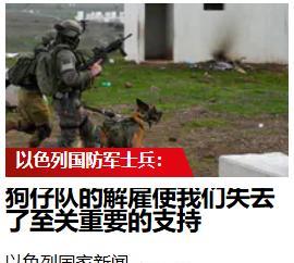 以色列侦察部队的士兵们:军犬和训练师拒绝前线验尸冒险被解雇,让我们面临更大的险境 以色列国家新闻 由于士兵拒绝指派狗,该单位的指挥官决定将士兵和他的狗从部队中开除,并将他们送出加沙地带。最终,尸体用推土机进行了检查。 侦察部队的士兵们称,由于犬类训练师被解雇,他们不得不在加沙地带没有导盲犬的情况下进入可疑建筑,使他们面临更大的危险。