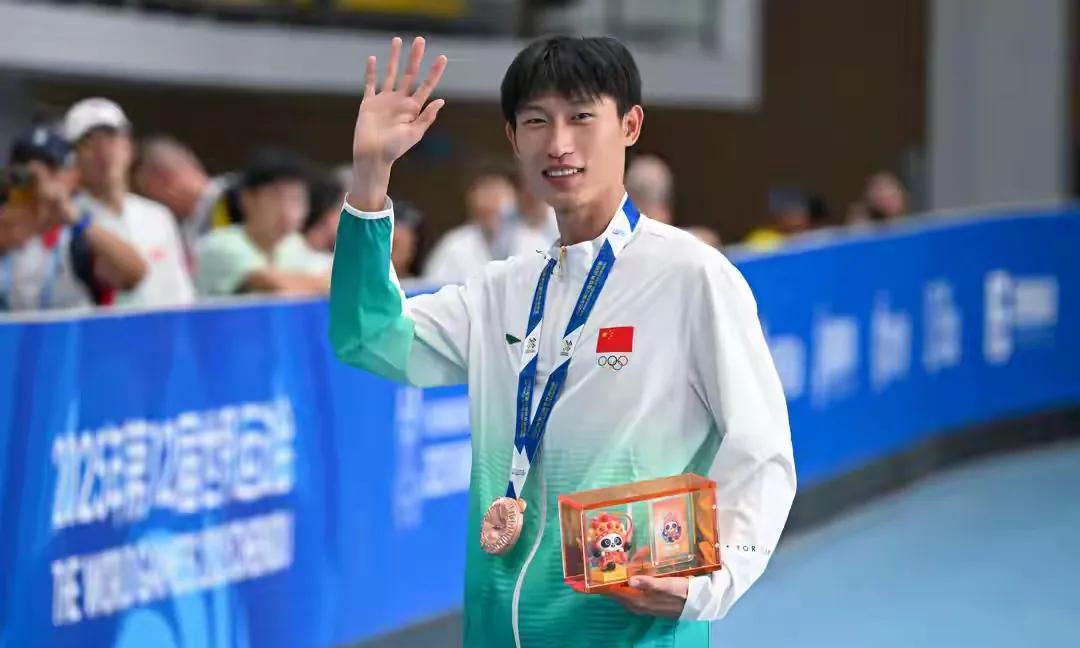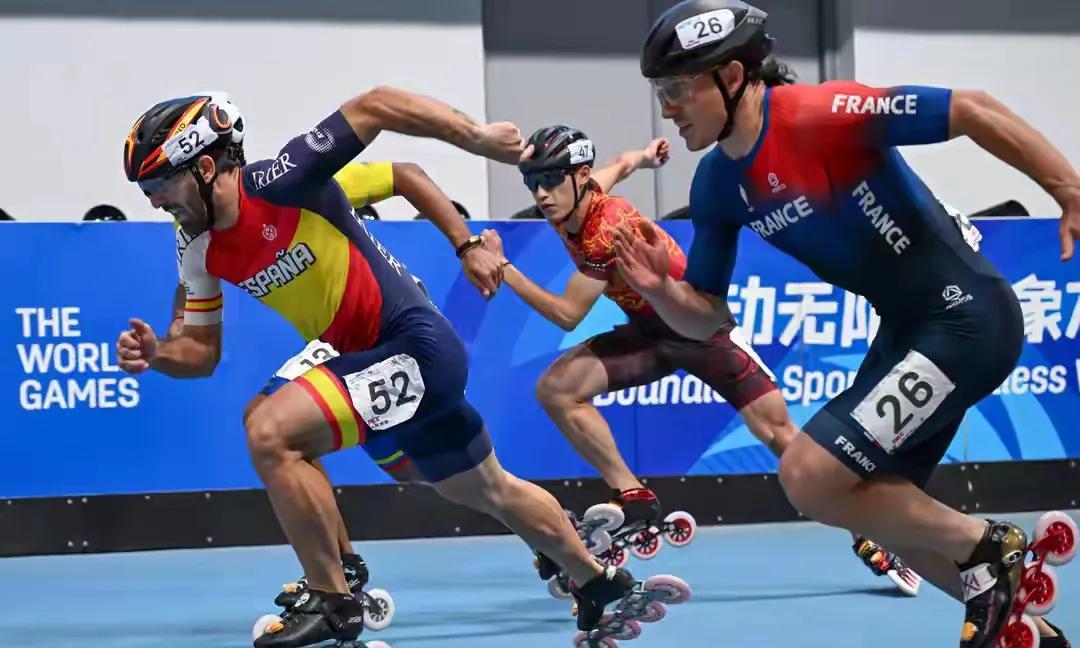 成都世运会速度轮滑男子场地赛500米+D争先决赛,中国选手张振海获得季军,拿到中国轮滑队本次比赛首枚奖牌,西班牙选手古斯曼·比塔尔和哥伦比亚选手塔斯孔·奥尔古分获亚军和季军。