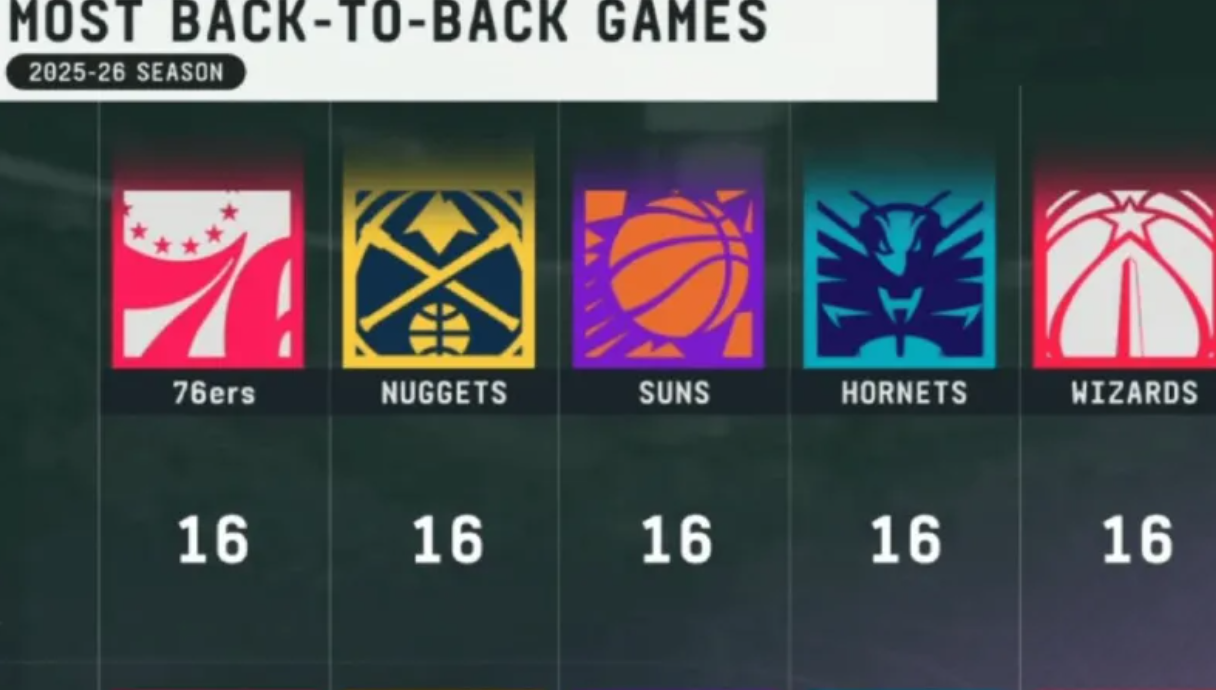 16次背靠背:76人、掘金、太阳、黄蜂、奇才;