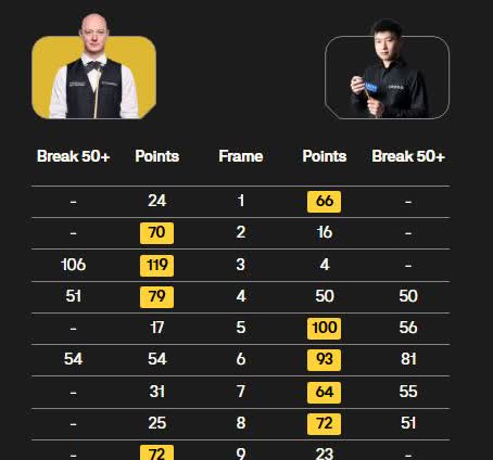韦克林击败赵心童赛后采访:“我对自己充满自信,如果这周我取得好成绩,就能稳居世界前十六。说实话即使我打败了赵心童,我也不认为人们会当我是顶尖高手,不过要是我能不断证明自己,我并不关心大家怎么看我。在克鲁斯堡四分之一决赛中我精疲力竭,精神上受尽折磨。我本赛季的目标是加强体能,所以我一直在加入跑步训练,目前为止一切往好的方向发展。” 韦克林在沙特大师赛16强以6-5逆转赵心童,报了过去在世锦赛和上海大师赛上的一箭之仇。