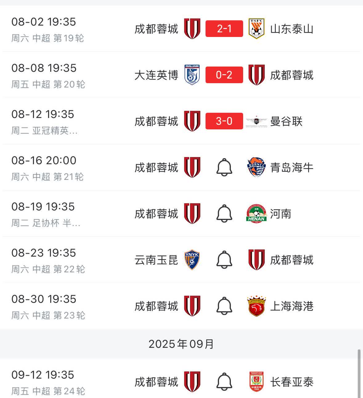 其实成都蓉城的赛程还是不错的,接下来球队分别在主场迎战青岛海牛,足协杯半决赛面对