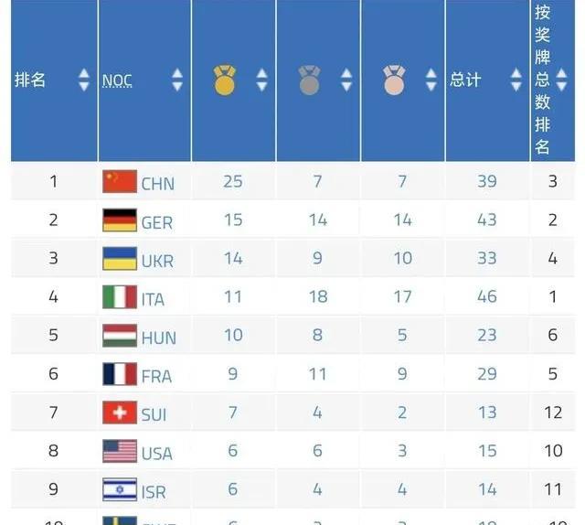 昨天中国代表团在成都世运会决出的15枚金牌中,凭借攀岩和健美操的精彩表现再获两金,目前以27金7银7铜继续领跑金牌榜,排名第二和第三的德国和乌克兰分别拿到15金和14金。比赛还剩最后两天,中国队已经确保了金牌榜第一位置,而中国代表团参加世运会的历史最好成绩是1997年芬兰拉赫蒂世运会拿到17枚金牌,这次大幅超越历史最佳纪录。