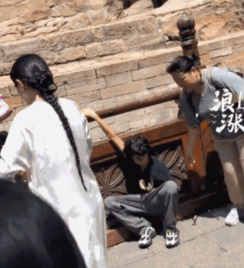 杜星霖的打扮可太吸睛了。她穿着一身中式长裙,头发盘得整整齐齐,还戴着串珠饰品,那“贵气感”直接拉满。她也没忘防晒,有工作人员专门给她撑伞。旁边游客看着,感觉她气场十足,妥妥的“大牌”范儿。