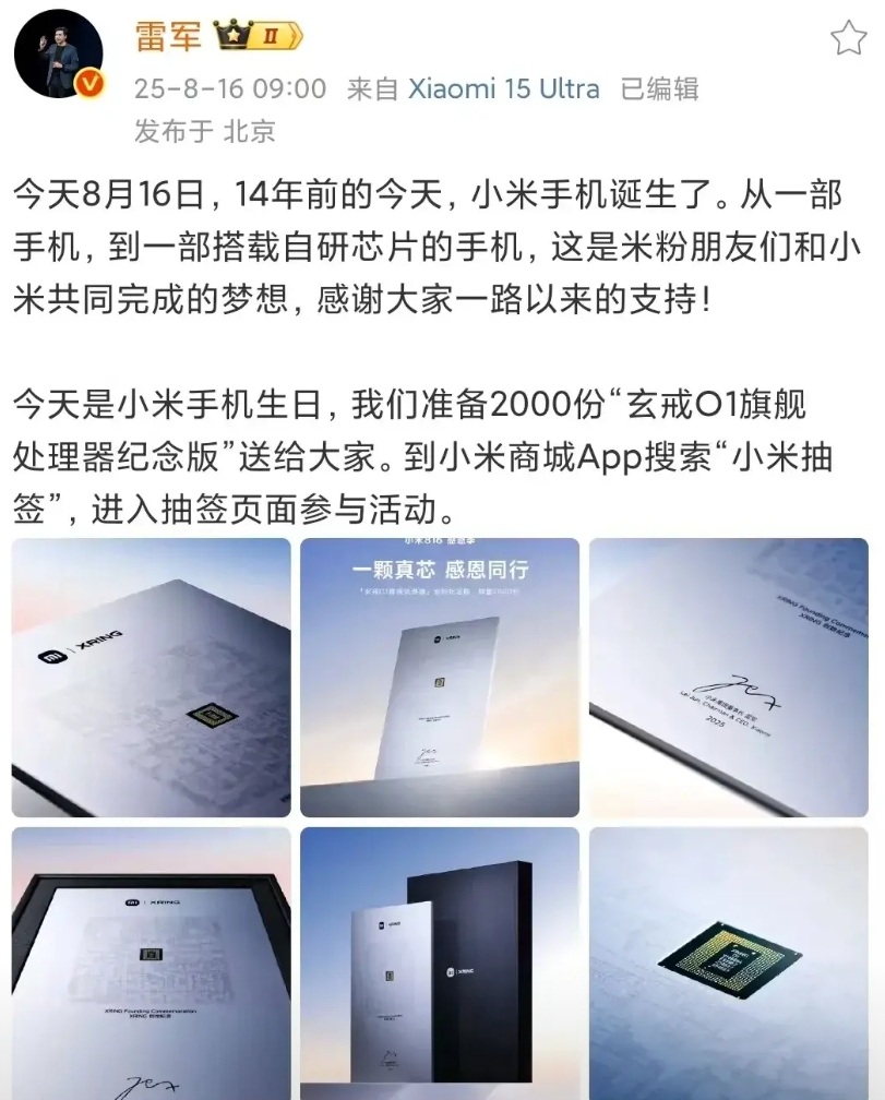 雷总这次准备了2000份芯片送给大家,就是希望有更多的米粉能够参与这次活动。毕竟这样的高端芯片还是非常具有收藏价值的。