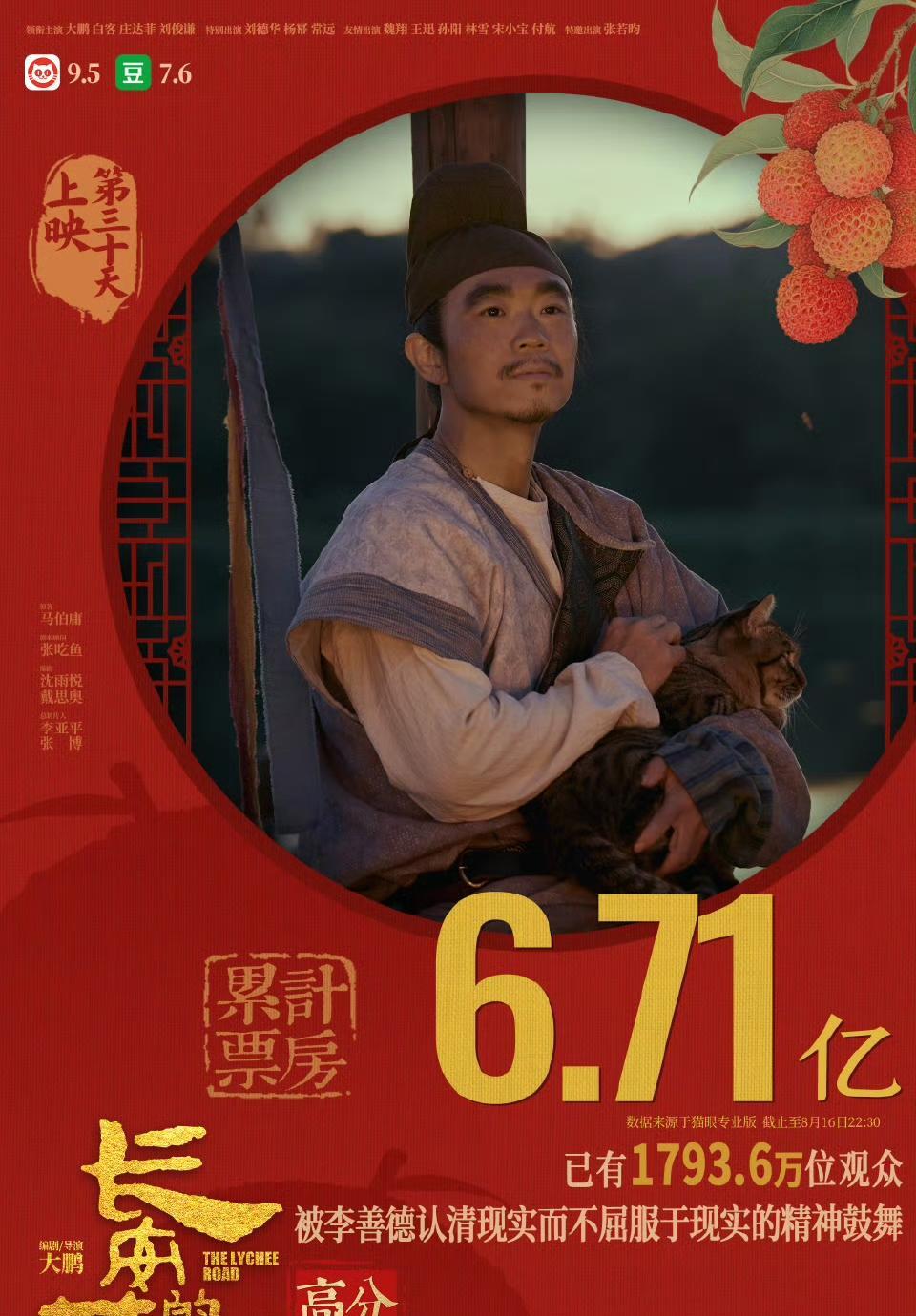 上映第30天,累计票房6.71亿,感谢1793.6万观众的喜爱与支持!在运送荔枝