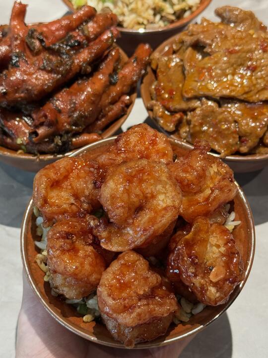 手打年糕、大虾球、牛肉萃饭、冰川茄子… 香香饭!心头爱🥹连吃三天!!