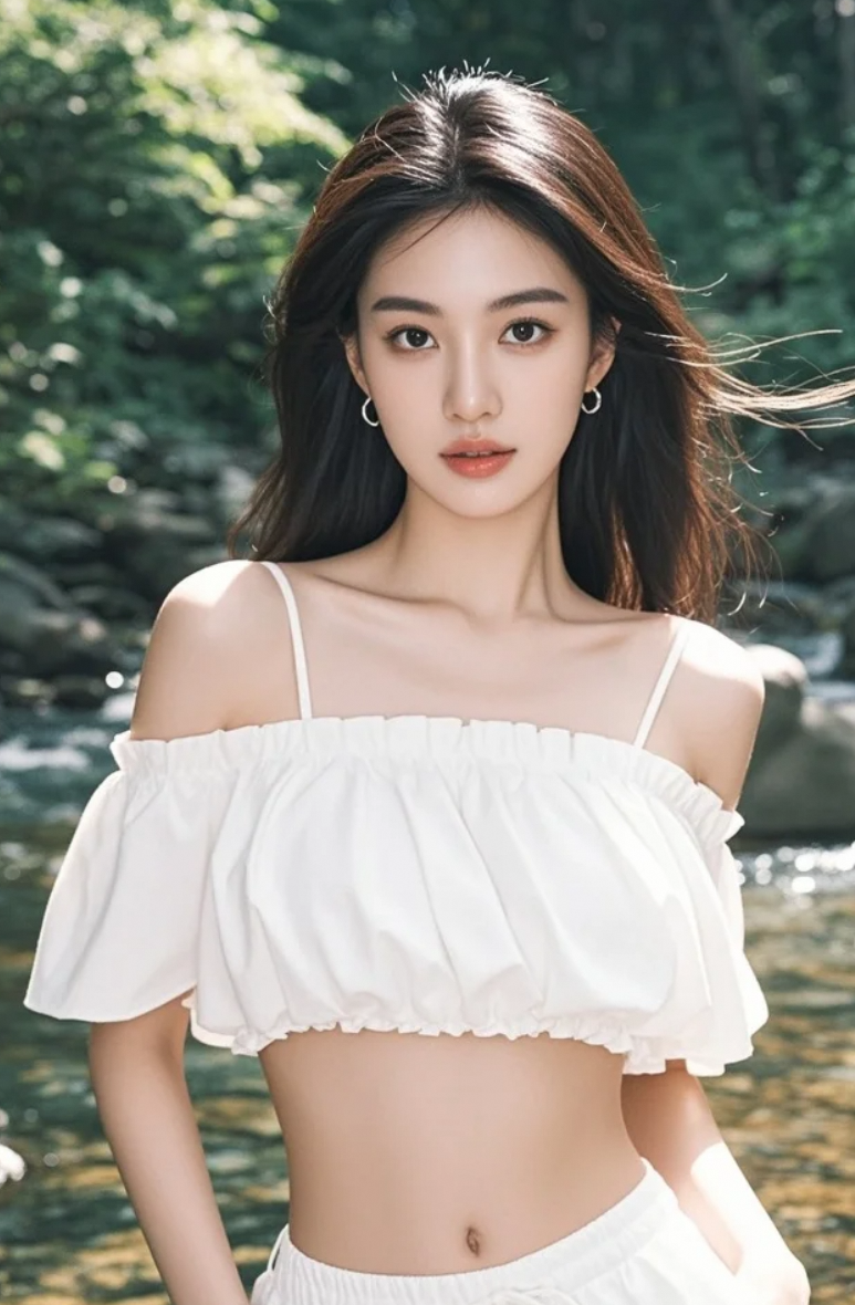 溪水映出她的倒影,连鱼儿都悄悄游来偷看。