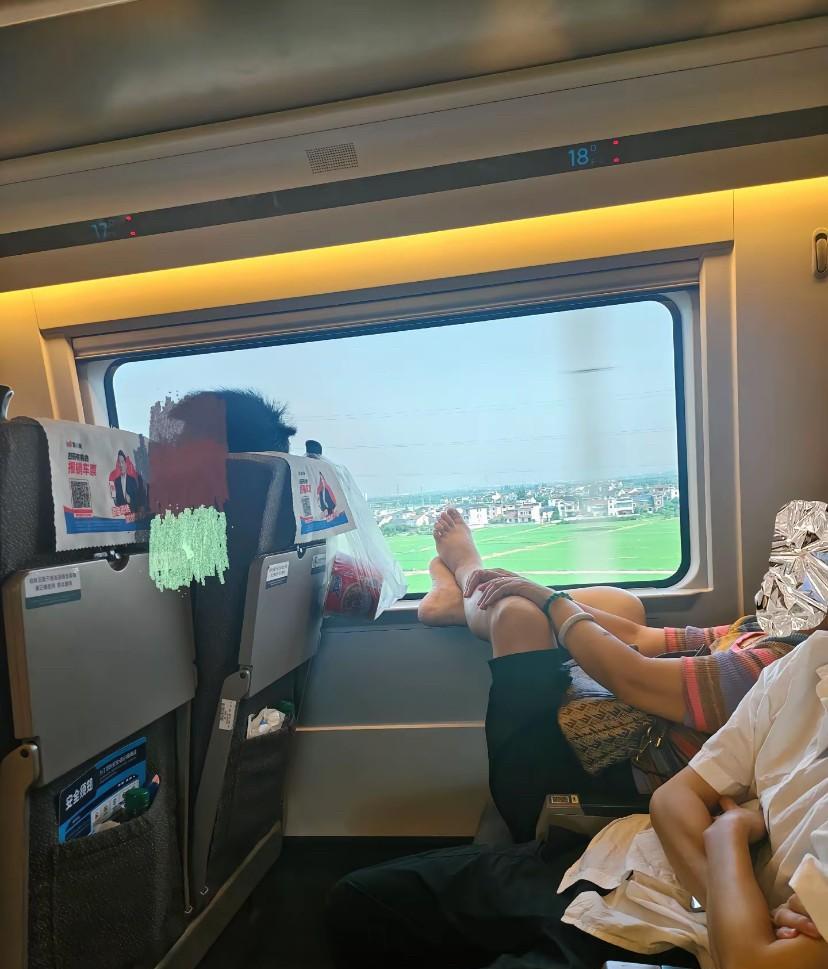这大姐把高铁当家了,从上车就开始脱掉鞋子放在窗户上,周边的人都被熏的快吐了,在家