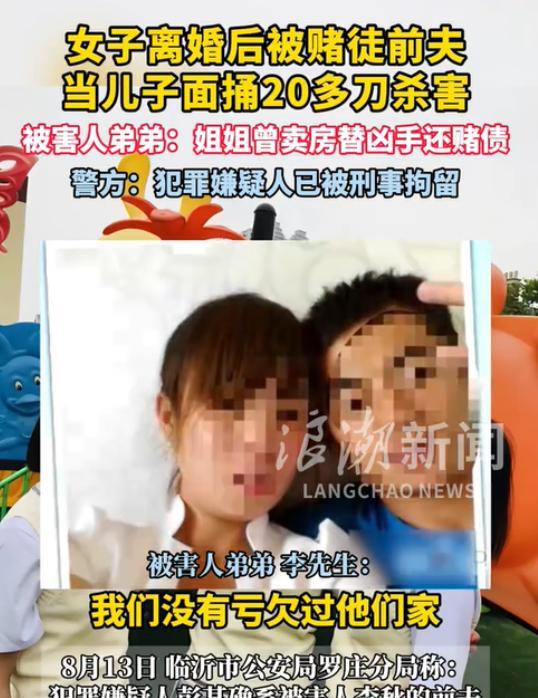 当一个家庭出现沾了赌的男人,这个家庭将会变得支离破碎! 根据8月14日浪潮新闻的报道,李女士(化名)和张先生(化名)是通过他人介绍认识的,由于当时的二人,都已经到了谈婚论嫁的年纪,在爱人的催促下,俩人并没有过多的了解对方,想着婚后也可以培养感情,便成为了一家人,走到了一起! 刚结婚的时候,张先生对李女士相当的好,走到哪里都带着对方,可谓是十分的恩爱,俩人的感情也迅速升温,李女士也怀了身孕,为张先生生了一个大胖小子,一家子过得幸福美满! 由于孩子的出生,张先生不得不外出工作,选择前往高工资的外地,但是离家里特别的遥远,然而为了一家子的幸福美满,张先生义无反顾的背井离乡,将家里的一切事务交代给了李女士照顾! 灰头土脸的张先生实在没办法了,回到家中将这件事告诉了李女士,一开始的时候李女士十分的震惊,然而她不得不接受这个现实,但是她们家庭的情况并不算富有,这笔高额的赌债对于她们来说,想要还清特别的困难! 但是事已至此李女士也没有别的办法,自己的丈夫犯了错误,好在张先生一直给李女士保证,自己以后再也不赌了,肯定努力挣钱还清这笔赌债,李女士心软了下来,便答应和对方共进退! 随即这笔欠款利息实在是太高,每个月还的钱大多数都偿还了利息,无奈之下,李女士便和张先生商量,将房子卖了先把账给还了,紧接着就将房子变卖,全部给张先生还了赌债! 然而张先生还是死性不改,又踏上了不归之路,这次竟然更加的过分,直接欠下了百万元的巨额赌债,李女士失望透顶,直接要和张先生进行离婚,准备带着孩子返回娘家生活! 随着时间的流逝,时间很快来到了2025年4月,和张先生已经分开几年的时间,家里人又给李女士物色了个相亲对象,俩人经过短暂的相处,便迅速的订了婚! 这一消息直接让张先生得知,他十分的气愤,多次的骚扰李女士和她的新婚丈夫,对此李女士十分的无奈,然而8月10日的晚上,张先生来到了李女士的家中,表示要见自己的孩子,李女士并没有多想,带着孩子前去开门,然而就在带着张先生一同返回屋子里后,张先生竟然亮出了一把刀具,凶狠的在李女士身上捅了二十几刀! 当时他们的孩子还在一旁站着,孩子发现妈妈浑身是血,连忙向父亲求饶,但是李女士当时已经因伤势过重当场离世,张先生也当场选择了报警自首,警方到场后立即将其控制住,带回警局进行审问,目前案件正在进一步办理中! 那么,对于这件事,大家认为张先生应当被判死刑吗? 信源:浪潮新闻