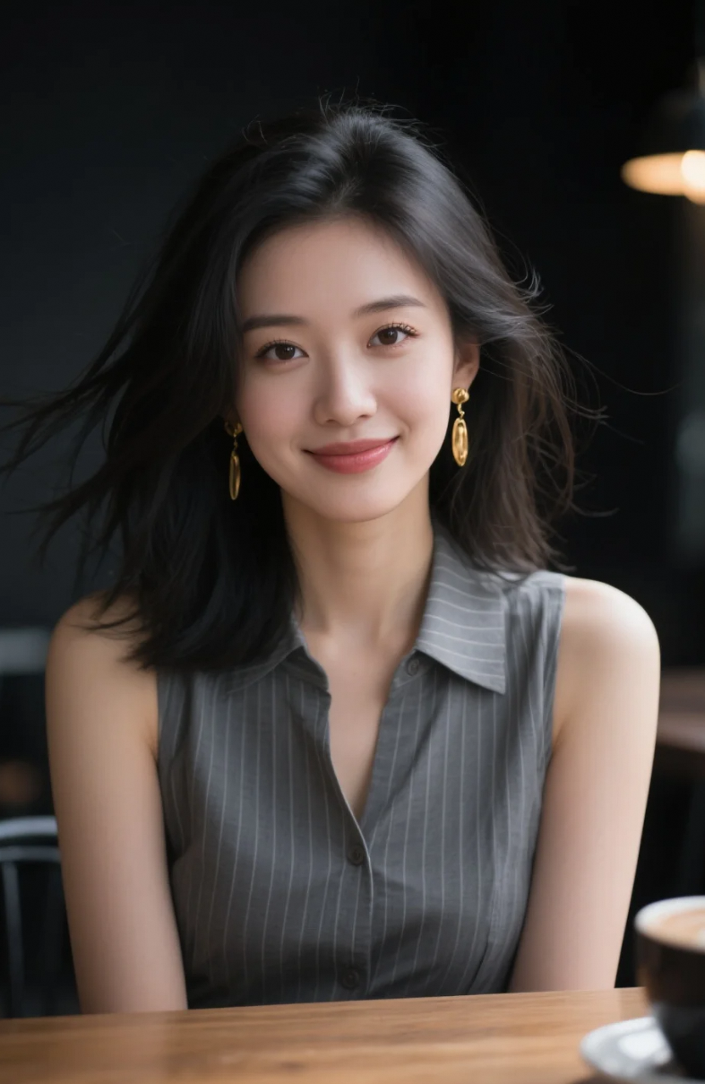 《光影里的星河》黑缎裁作夜的容器盛着一弯被目光点燃的月色耳坠垂落星芒彩