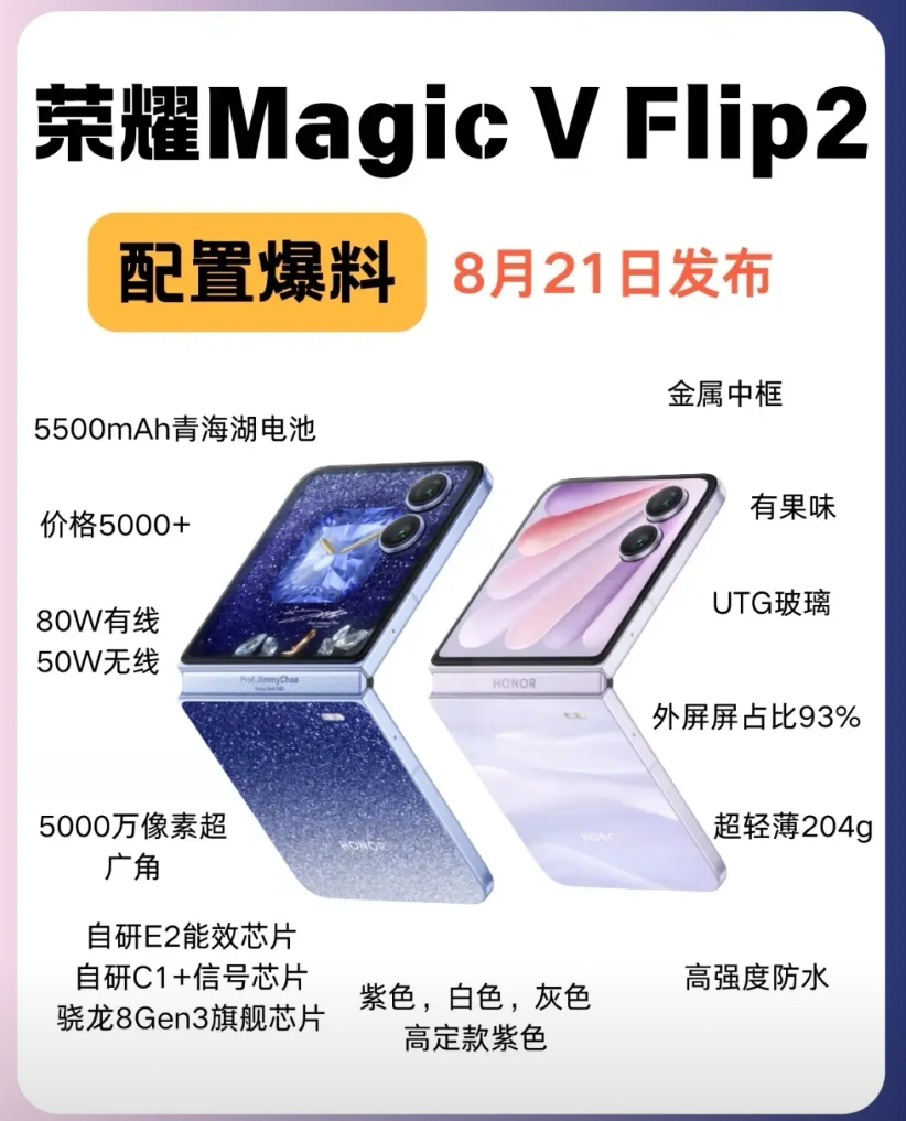 是我错了,本以为荣耀Magic V Flip2的售价还是4999,不过现在的情况是,5999好像都扛不住。确实是没想到,荣耀Magic V Flip2用的是5500mh的电池,而且有50W无线闪充,加上首发的2亿像素主摄和UTG玻璃内屏,这成本估计已经超标了 你们觉得这手机的价格会是多少