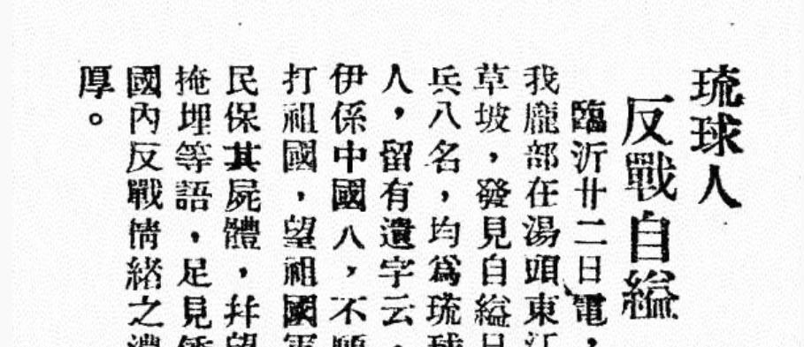 初春的山东临沂,硝烟刺鼻。1938年3月,国军士兵清扫战场时,在汤头镇东边的池草坡撞见惊人一幕——八具穿着日军军服的尸体悬在树上,随风摇晃。 尸体旁的石块下,压着一张皱巴巴的纸,上面用汉字潦草地写着:“伊系中国人,不愿打祖国,望祖国军民保其尸体,并望掩埋。” 后来才知,这八人全是琉球人,被日军强征为侵华炮灰。当枪口对准中国同胞时,他们选择了集体自缢。 “琉球”这个国名,是朱元璋亲赐的。 1372年,大明使臣杨载带着诏书踏上一串太平洋明珠般的岛屿。诏书上“琉球”二字铁画银钩,从此定名五百余年。岛上中山王喜出望外,当即派王弟随杨载回朝,向朱元璋奉表称臣。 大明对这个小弟掏心掏肺。1392年,朱元璋大手一挥,福建三十六姓工匠携先进技术跨海定居琉球。造船、翻译、贸易技术倾囊相授,琉球子弟年年赴华留学。 在首里王宫,琉球史官用汉字书写历史;朝堂之上,汉语是官方语言;每逢新王登基,必等中国皇帝册封金印。哪怕清军入关改朝换代,琉球使者依然渡海来朝,岁岁进贡,五百年不改其志。 日本萨摩藩的武士刀,早在1609年就砍向琉球。王宫珍宝被洗劫一空,国王尚宁被掳到日本囚禁三年,被迫签下屈辱条约。 真正的灭顶之灾在1879年来临。日军铁蹄踏破首里城,宣布废琉球国设冲绳县。末代国王尚泰被押往东京,琉球五百载国祚戛然而止。 绝望中,琉球使臣林世功星夜奔往北京。他跪在总理衙门前血书泣诉:“还我君王,复我国都!”求救无门后,这个38岁的忠臣挥刀自刎。慈禧闻讯动容,赐银二百两葬于通州张家湾。 而在琉球本土,日军架起油锅镇压反抗者。投海自尽的百姓在海岸线漂浮,染黑了一片碧涛。 日本吞并琉球后,立即推行“皇民化”。1898年更强制琉球人服役,二战期间超过三万琉球人沦为战争炮灰。 在渡嘉敷岛,少女亚衣被父亲持斧逼到悬崖。她哭喊“爸爸不要杀我!”的瞬间,斧刃已劈落。这一幕被幸存者田上写进给妹妹的信里,七十年后字迹仍渗着血泪。 短短三个月,二十六万琉球人丧生,占当时人口四分之一。碧海白沙间,尸骸堆积如山。 琉球命运本有转机。1943年开罗会议期间,罗斯福两次对中方表态:“琉球群岛应归还中国。” 蒋介石却在日记中纠结:“琉球在甲午前已属日本,由中美共管更妥。”11月23日,他婉拒了罗斯福的提议。 此后,美国迅速转向。1953年将奄美群岛交给日本,1972年更把冲绳“管理权”私相授受。如今冲绳驻日美军基地占岛面积15%,战机轰鸣声日夜撕裂着琉球人的记忆。 走在今日那霸街头,仅3% 的冲绳人愿自称“日本人”。2013年,当安倍晋三在琉球高呼“天皇万岁”,愤怒的民众举牌抗议。当年正是这句口号,逼得他们的祖辈跳下悬崖。 玉城丹尼2013年以冲绳知事身份访华时,专程跪拜张家湾林世功墓。青烟缭绕中,琉球汉姓“林氏”碑文清晰如初。 2012年9月18日,中国政策科学研究会发表宣言,“琉球从来不属于日本!”这声惊雷,震醒了沉睡的历史公义。 八十多年过去,汤头镇山坡上的八具忠骨早已无处寻觅。但当我们翻开1945年冲绳战役档案,发现垂死日军仍在屠杀琉球平民时,忽然懂得那八名琉球壮丁的遗书,是对“祖国”最绝望的告白。 血脉深处的文化记忆,比任何刺刀下的臣服都更长久。琉球群岛上,闽人三十六姓的后裔仍在祭拜妈祖,老人们用混着福建腔的琉球语教童谣:“唐船飘飘,来抵阿妈港!”(中国船飘呀飘,来到那霸港)